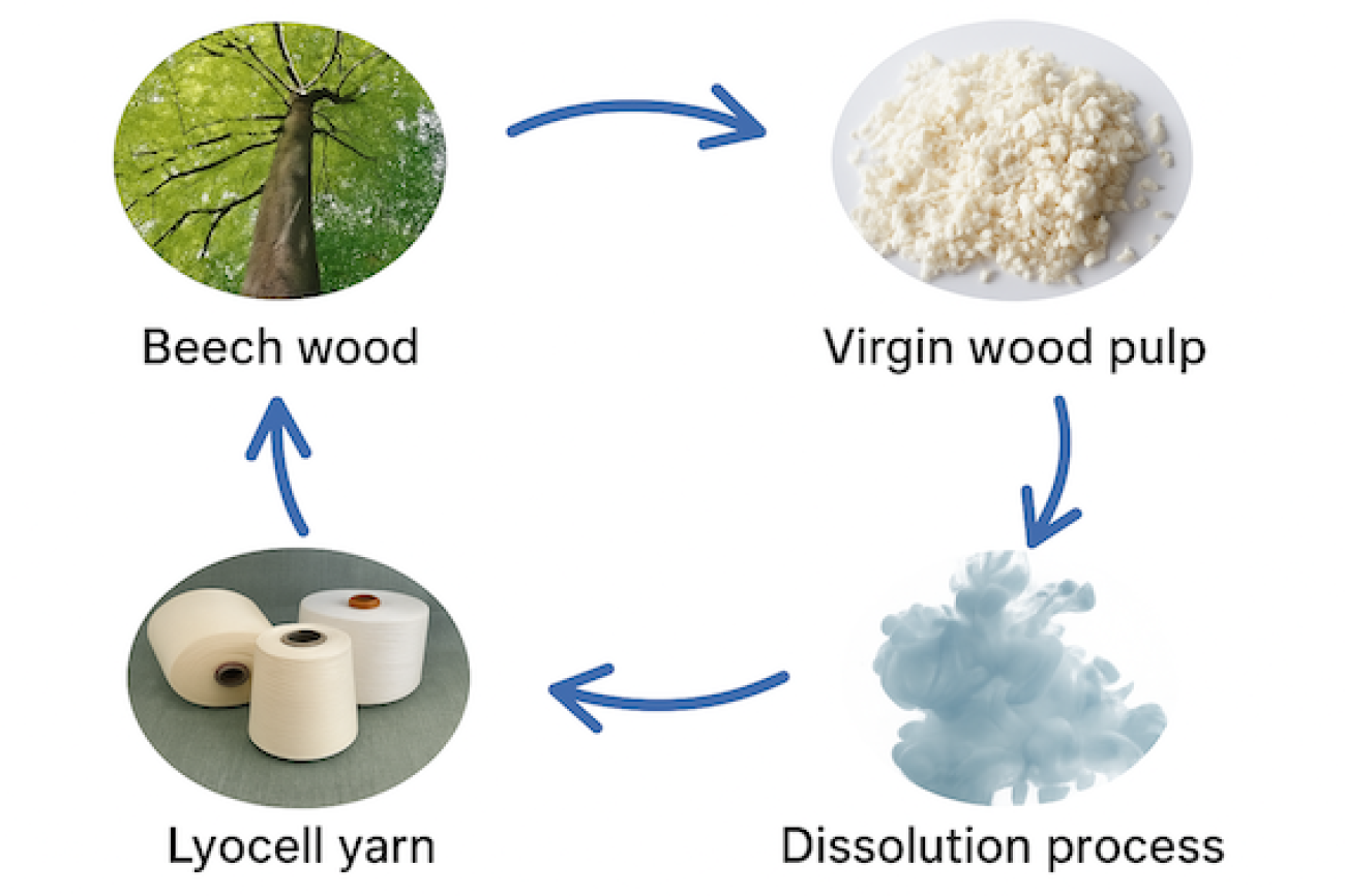- 【Remind】:生產過程涉及將天然纖維素(來自棉或木漿)溶解,再透過化學反應和紡絲成形,涉及化學處理;再經過特殊處理,才能移除有毒的化學品。→ 過程對環境有一定的危害。