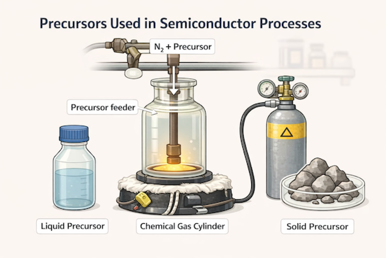 - 前驅物,有利於在半導體銅製程導線周圍沉積成膜,是 CVD 與 ALD 製程會使用到的半導體材料。